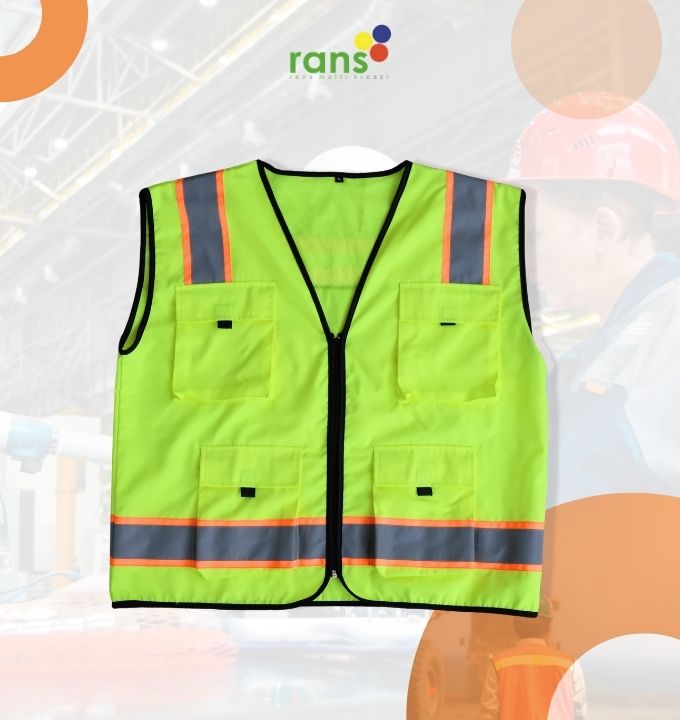 Dilengkapi dengan scotchlite reflektif standar proyek dan dapat ditambahkan kantong multifungsi sesuai kebutuhan kerja. Cocok untuk industri konstruksi, logistik, warehouse, dan pekerjaan jalan.