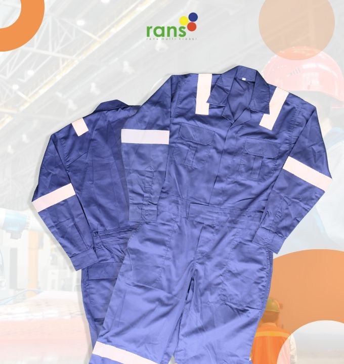 Wearpack safety custom satu set (coverall) dengan bahan tebal dan jahitan kuat, dirancang untuk perlindungan maksimal di area kerja berisiko.